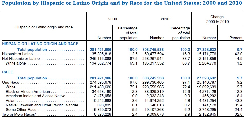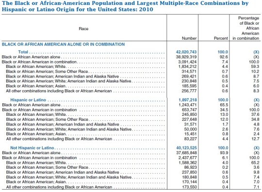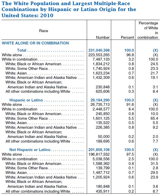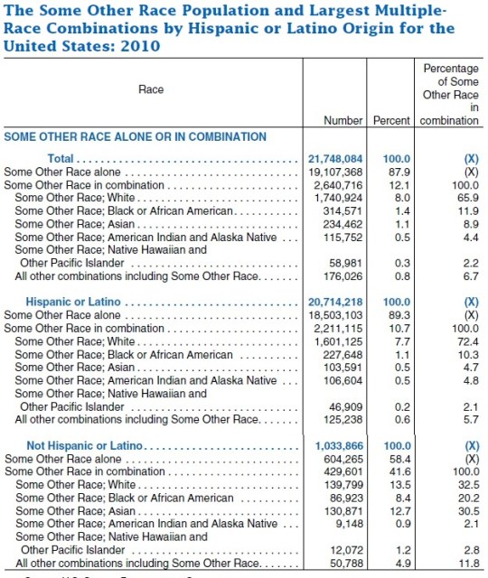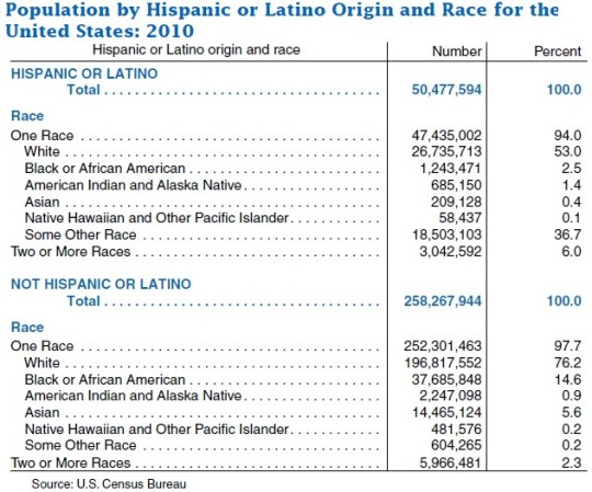 The most recent Census 2010 shows the following for Hispanics/Latinos by their racial classifications:
