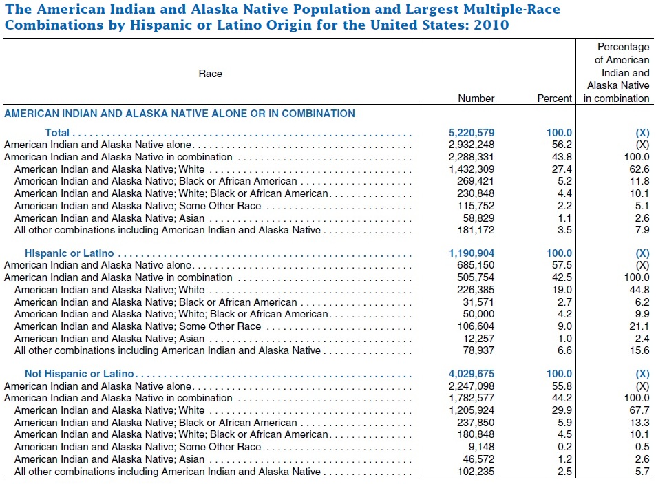 Many Hispanics/Latinos in the United States identify as “Some Other Race” because many are either of Amerindian origin and do not mark American Indian on the U.S. Census form, because they do not identify with a specific Native American tribes as the Census form states one to identify. Also, many of these Amerindian Hispanics/Latinos identify themselves as they would in their home countries of origin; many countries of origin identify their populations by nationality and not by Native ethnic origin or race. Other Hispanics/Latinos mark “Other Race” due to the fact of their mixed racial heritage: some Mestizo (Native American and white), some Zambo (Native American and black), mulatto (white and black mix) and others. They do not want to mark that they are white, black, American Indian or other on the Census forms. Other reason are at play as well.