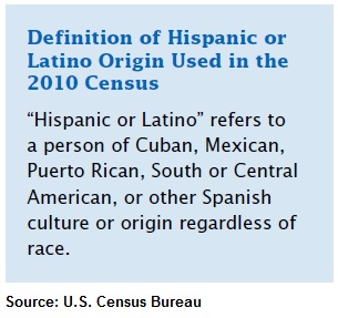 The 2010 Census question on Hispanic origin included five separate response categories and one area where respondents could write-in a specific Hispanic origin group. The first response category is intended for respondents who do not identify as Hispanic.