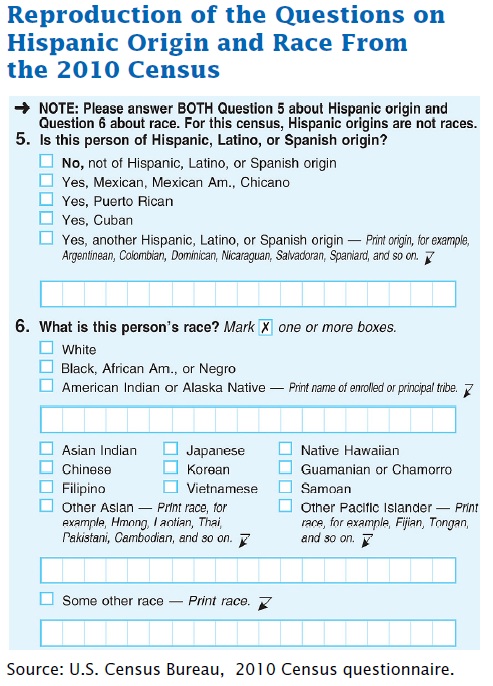 During the 2010 Census, questions on race and Hispanic origin were asked of every individual living in the United States.