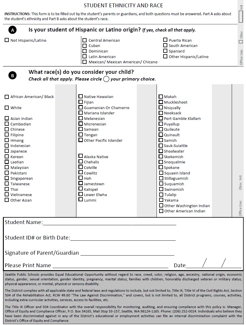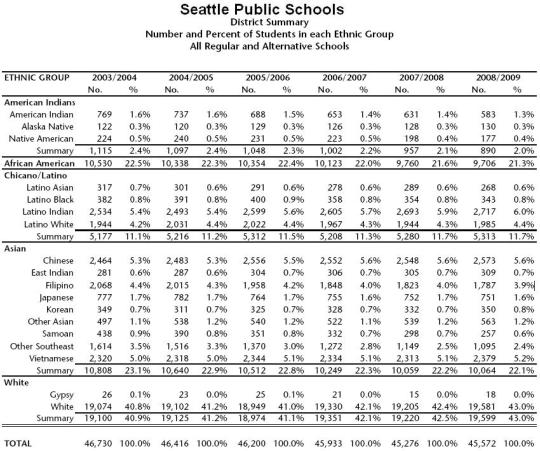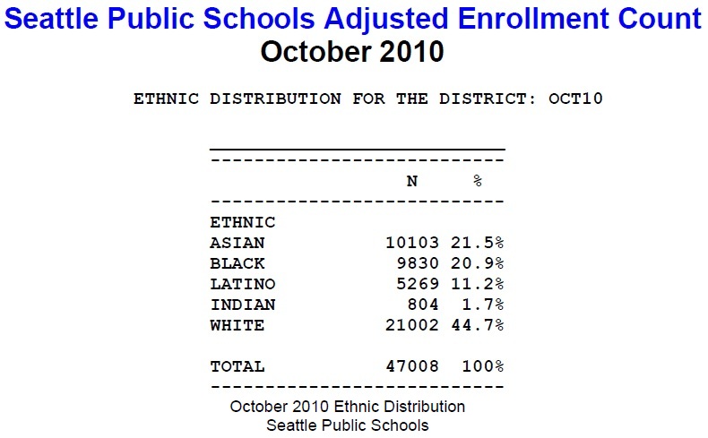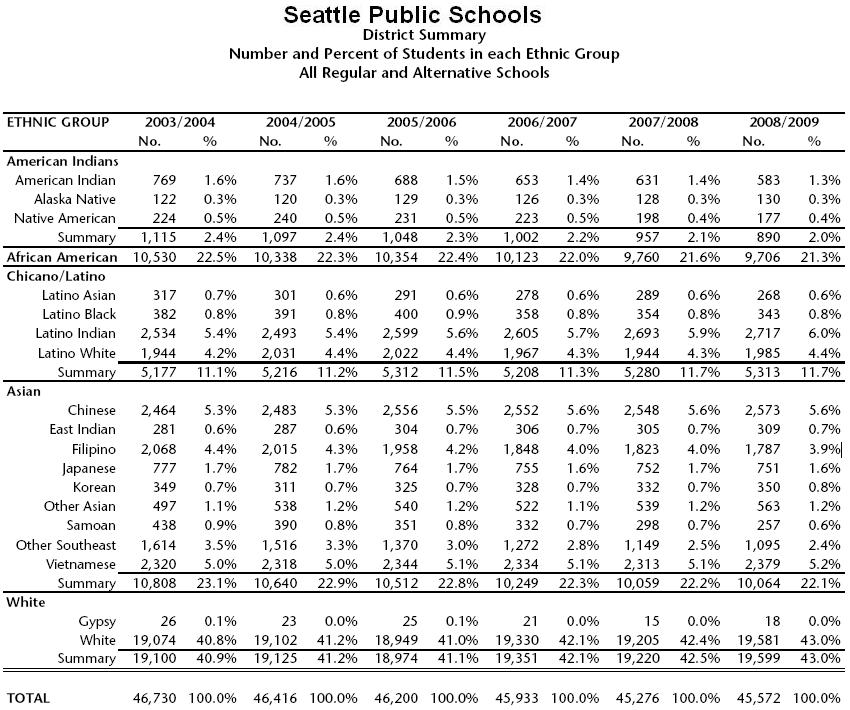 Seattle Public Schools, like most U.S. school systems, now currently shows Latino as if it is a racial or ethnic category and does not follow the U.S. Census Bureau’s “Guidance on the Presentation and Comparison of Race and Hispanic Origin Data”