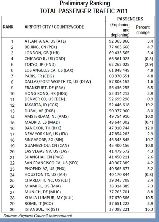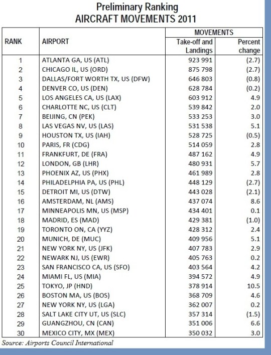 See update: ACI’s 2012 World’s busiest airports traffic and rankings- Release Date March 26, 2013