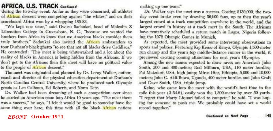 In 1971 Walker would bring the Pan-Africa/USA games to Durham, NC.