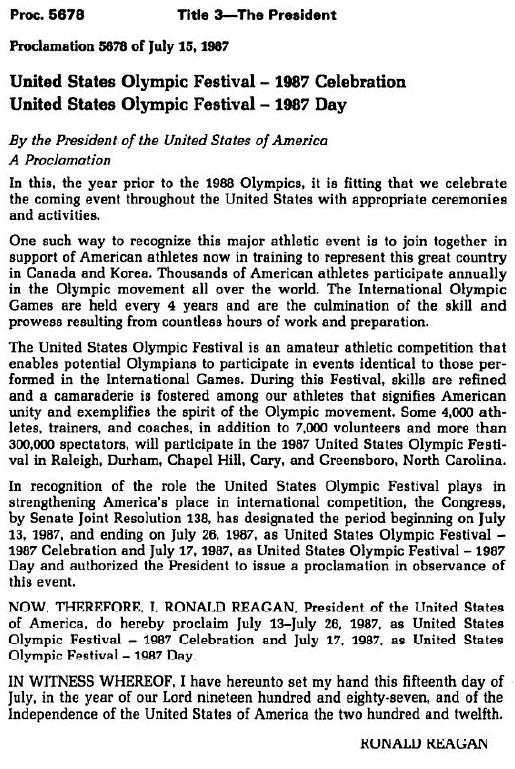 Video: A montage of athletes competing at the 1987 US Olympic Festival held in Raleigh-Durham, NC