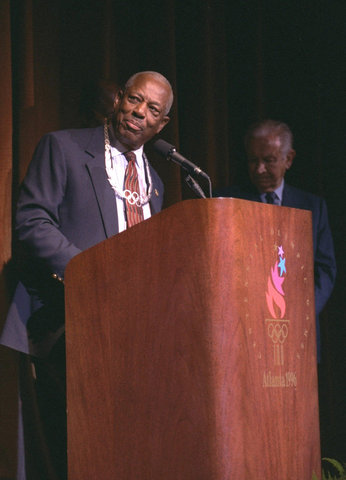 Dr LeRoy Walker, President of the USOC, addresses the delegates at the International Olympic Committee 105th session opening ceremony in Atlanta, Georgia -1996.