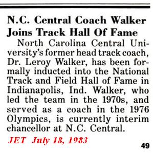 In 1945 Walker became track coach at then North Carolina College (now North Carolina Central University).