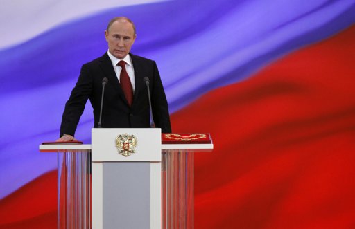 Vladimir Putin is sworn in as the new Russian President during a ceremony at the Kremlin in Moscow, May 7, 2012. Vladimir Putin appealed for unity in Russia after being sworn as president on Monday and pledged to strengthen democracy in his new six-year term. REUTERS/Dmitry Astakhov/RIA Novosti/Pool