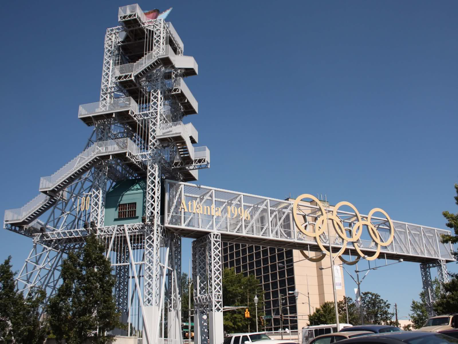 Centennial Olympic Tower was re-located from the Olympic Stadium after the stadium was converted into an MLB baseball park for the Atlanta Braves and currently stands next to a parking lot where the former Atlanta-Fulton County Stadium was once located.