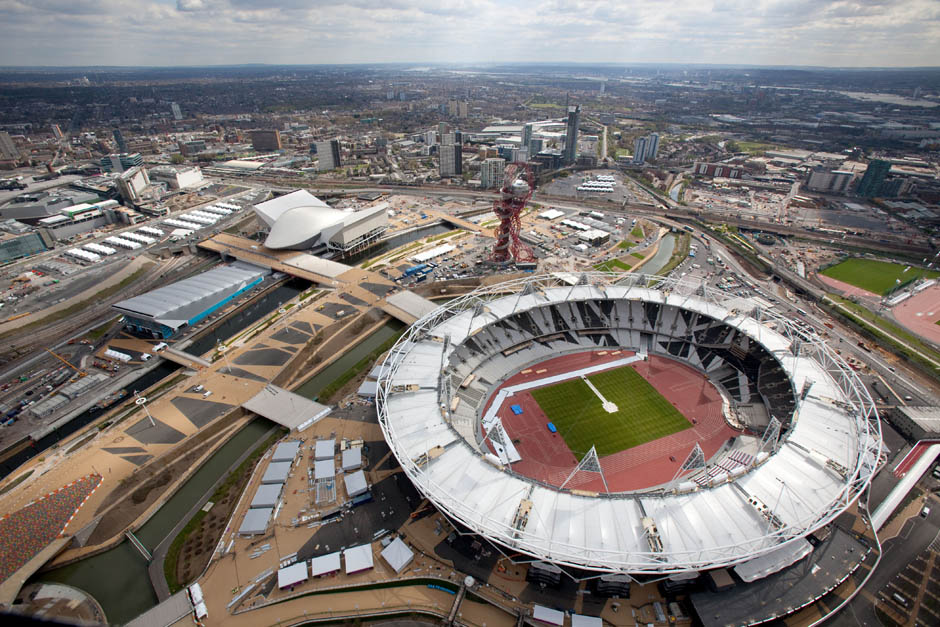 The London skyline is seen from the top of the ArcelorMittal Orbit in the London 2012 Olympic Park in east London May 11, 2012. The structure was officially unveiled on Friday. REUTERS/Ki Price