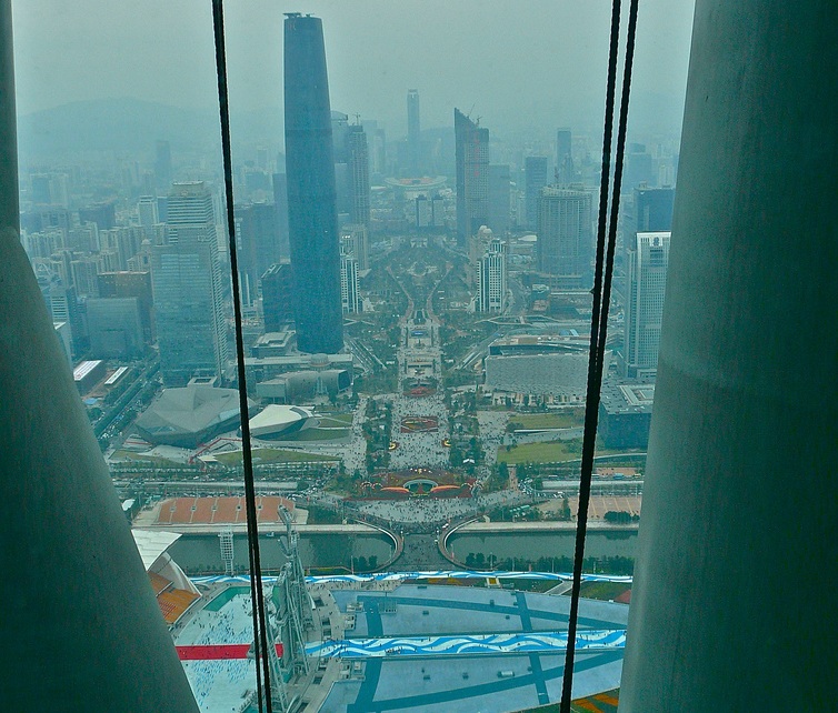 Topping out of the tower was in 2009 and it became operational on September 29, 2010 for the 2010 Asian Games. Antenna spire 600 meters (1,968.5 ft)