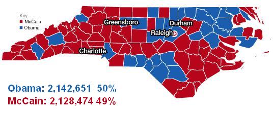 Obama received 95 percent of the support from African Americans in North Carolina in the 2008 election, compared with just 5 percent for Republican nominee John McCain.