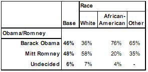 The decline in African American support for Obama follows the general trend of voters in North Carolina. A month ago, Obama led Romney by a point. Two months ago, Obama led by 5 points.