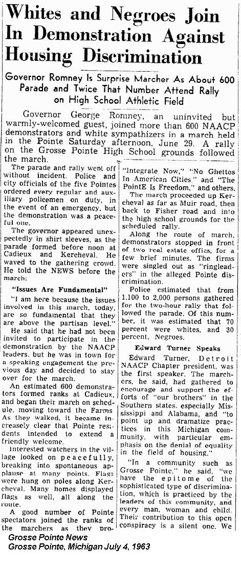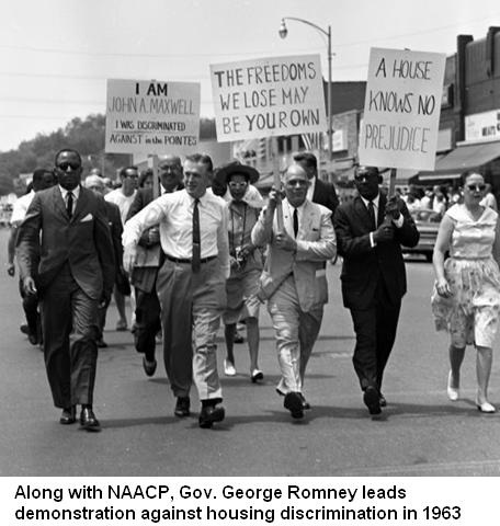 ANN ARBOR, Mich. — In 1963, an explosive year in the quest for civil rights, George Romney appeared unannounced in the mostly white suburb of Grosse Pointe and marched to the front of an anti-segregation demonstration to stand beside black leaders.