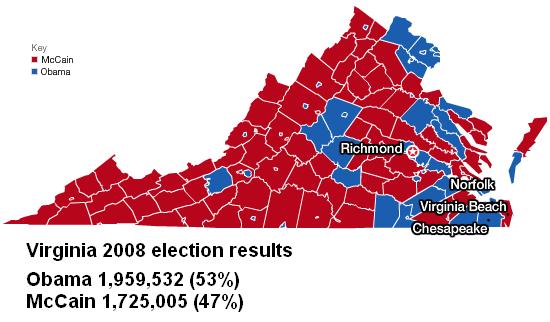 Virginia -2008 Counties where President Obama won