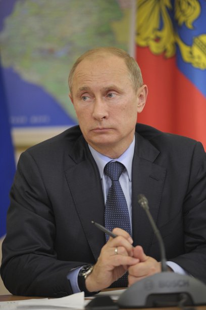 Russian President Vladimir Putin takes part in a meeting about the patriotic education of young people in Krasnodar September 12, 2012. Russian Prime Minister Dmitry Medvedev said on Wednesday he thought three Pussy Riot punk band members should be freed from prison following their conviction last month for a profanity-laced protest against Putin in a Moscow cathedral. REUTERS/Alexsey Druginyn/Ria Novosti