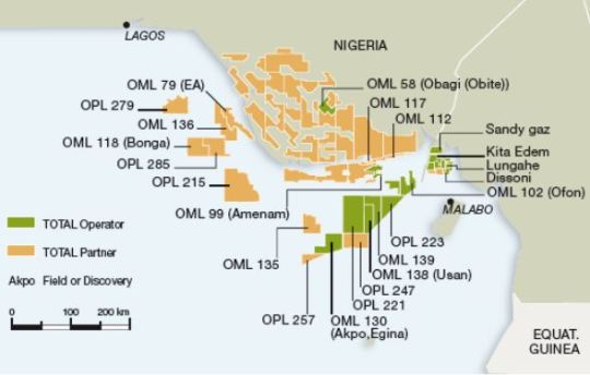 It disclosed: “Deepwater developments are one of Total’s main growth avenues in Nigeria, where the group operates the Akpo field in OML 130 and is also preparing to develop the Egina field in the same lease. Offshore production also comes from OMLs 99, 100 and 102, which are operated by the group as part of a joint venture with NNPC.