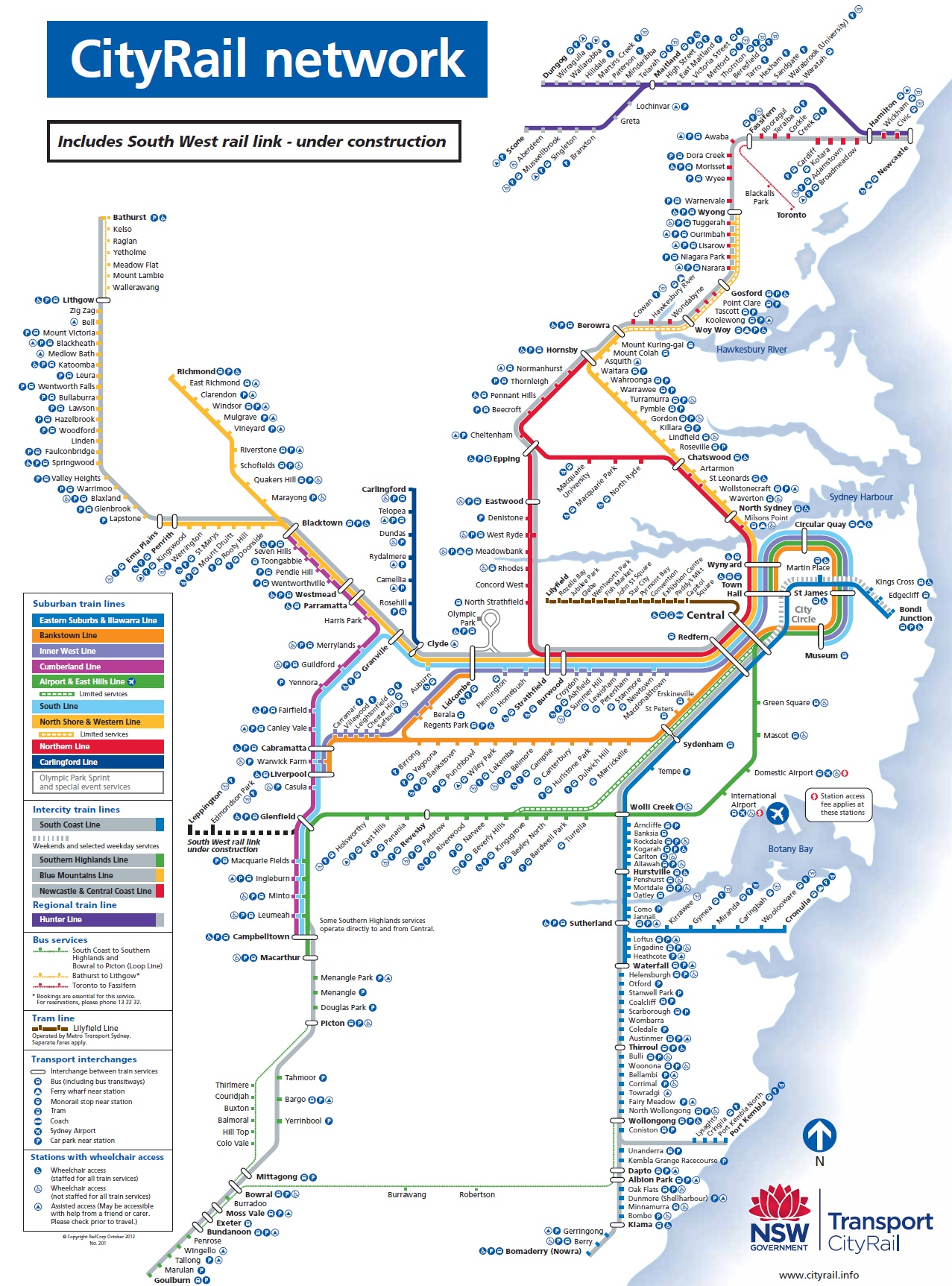 CityRail is the commuter passenger rail service covering suburban Sydney and extending to the Hunter, Central Coast, Blue Mountains, Southern Highlands and South Coast regions.