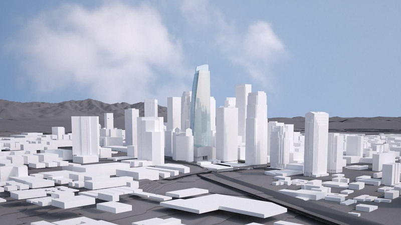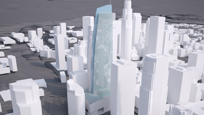 The foundation of the 335-meter tower (1099.08 ft) will be poured at the end of this year, with a grand opening planned for March 2017, said Chris Martin, chief executive officer of Los Angeles-based architecture firm AC Martin Partners. The building will rise higher than downtown’s 310-meter (1,018 ft) US Bank Tower, currently the tallest in the US West. Final renderings of the new tower were unveiled at a press conference on Thursday.