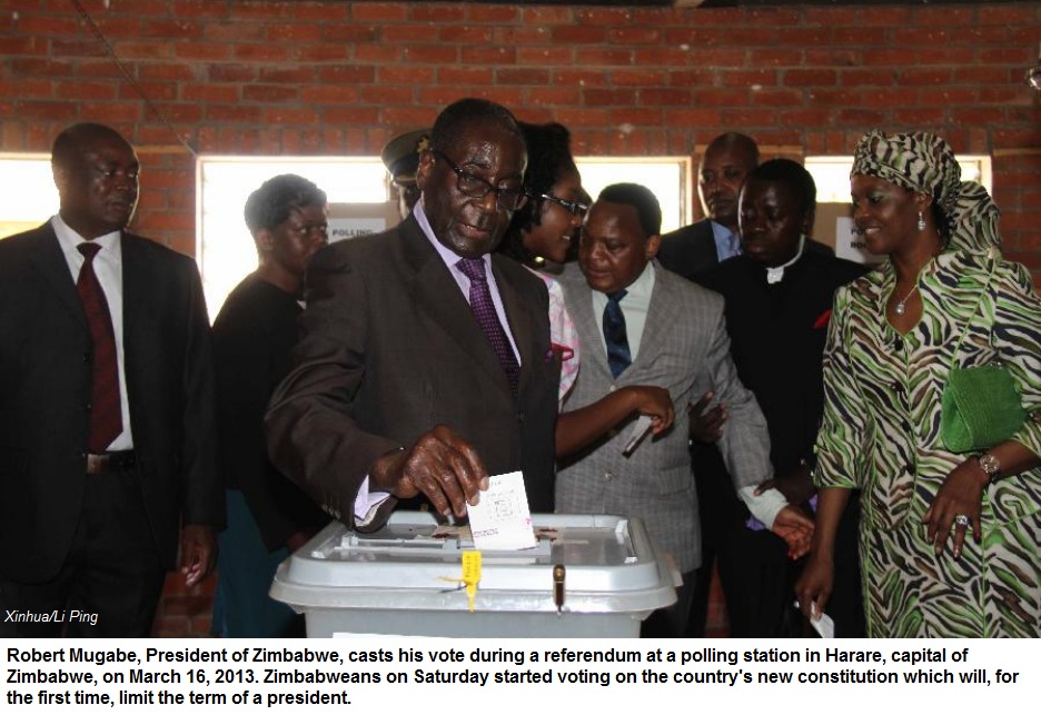 The passage of the draft, which still needs endorsement of the parliament, will set the stage for presidential elections slated later this year, an expected fierce battle in which long-time ruling President Robert Mugabe of ZANU-PF will pit against arch rival Prime Minister Morgan Tsvangirai of MDC-T to end the troubled four-year-old coalition government.