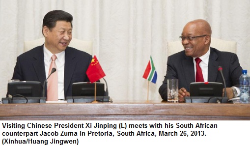 PRETORIA, South Africa– Chinese President Xi Jinping and his South African counterpart, Jacob Zuma, met here Tuesday and agreed to further boost bilateral relations.