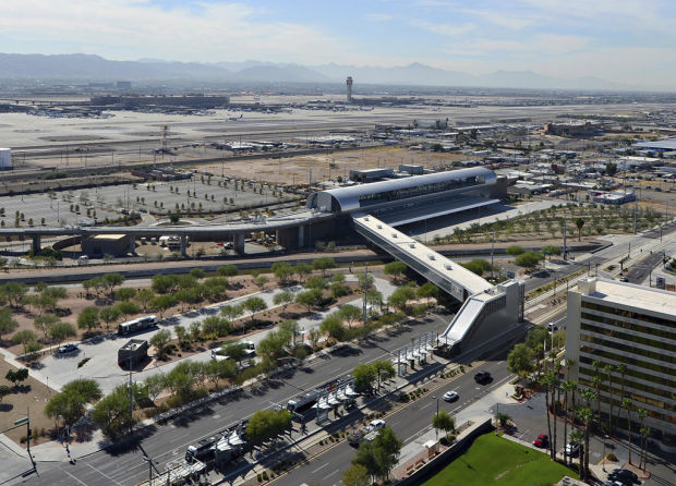 Larry and Dana Eichenlaub of east Mesa rode the train Monday afternoon after returning from a trip to Dallas. The couple were relieved that they didn’t have to wait at the curb outside baggage claim to catch a bus to their car in economy parking.