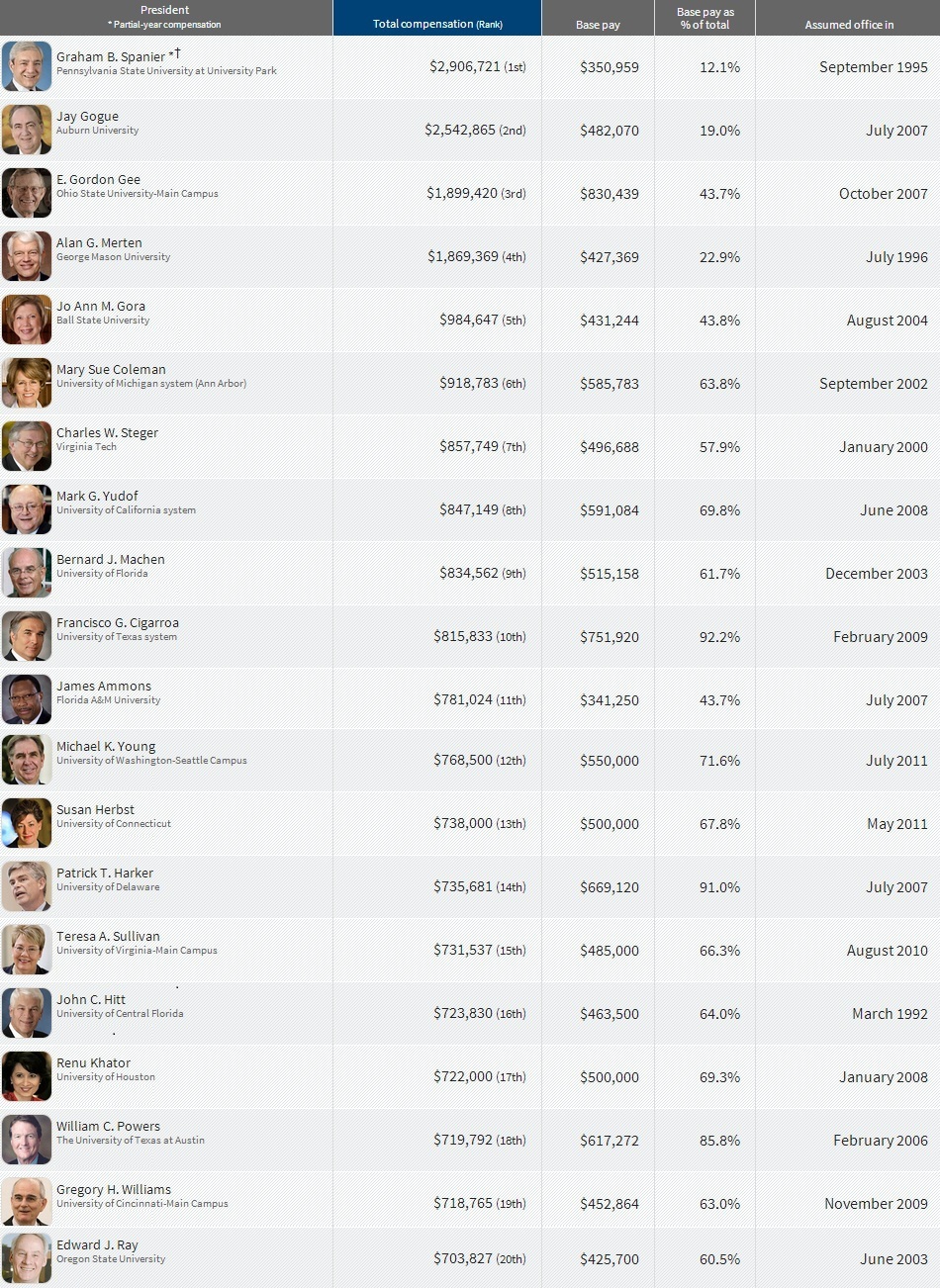 Top 200 highest paid public college presidents 2012 FY
