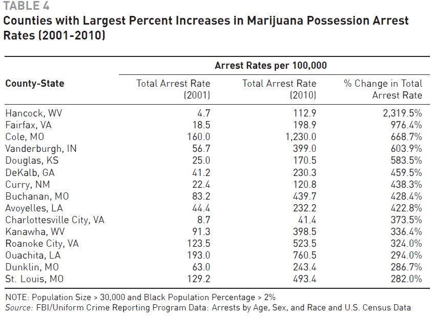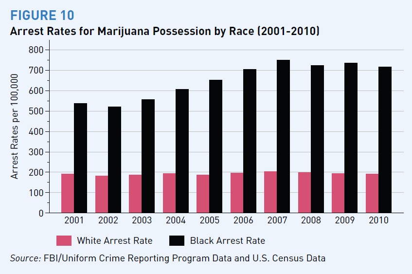 This report is the first to examine marijuana possession arrest rates by race for all 50 states (and the District of Columbia) and their respective counties from 2001 to 2010.