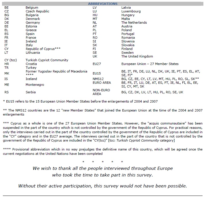 The standard Eurobarometer was established in 1973. Each survey consists of approximately 1000 face-to-face interviews per country. Reports are published twice yearly. Reproduction is authorized, except for commercial purposes, provided the source is acknowledged.