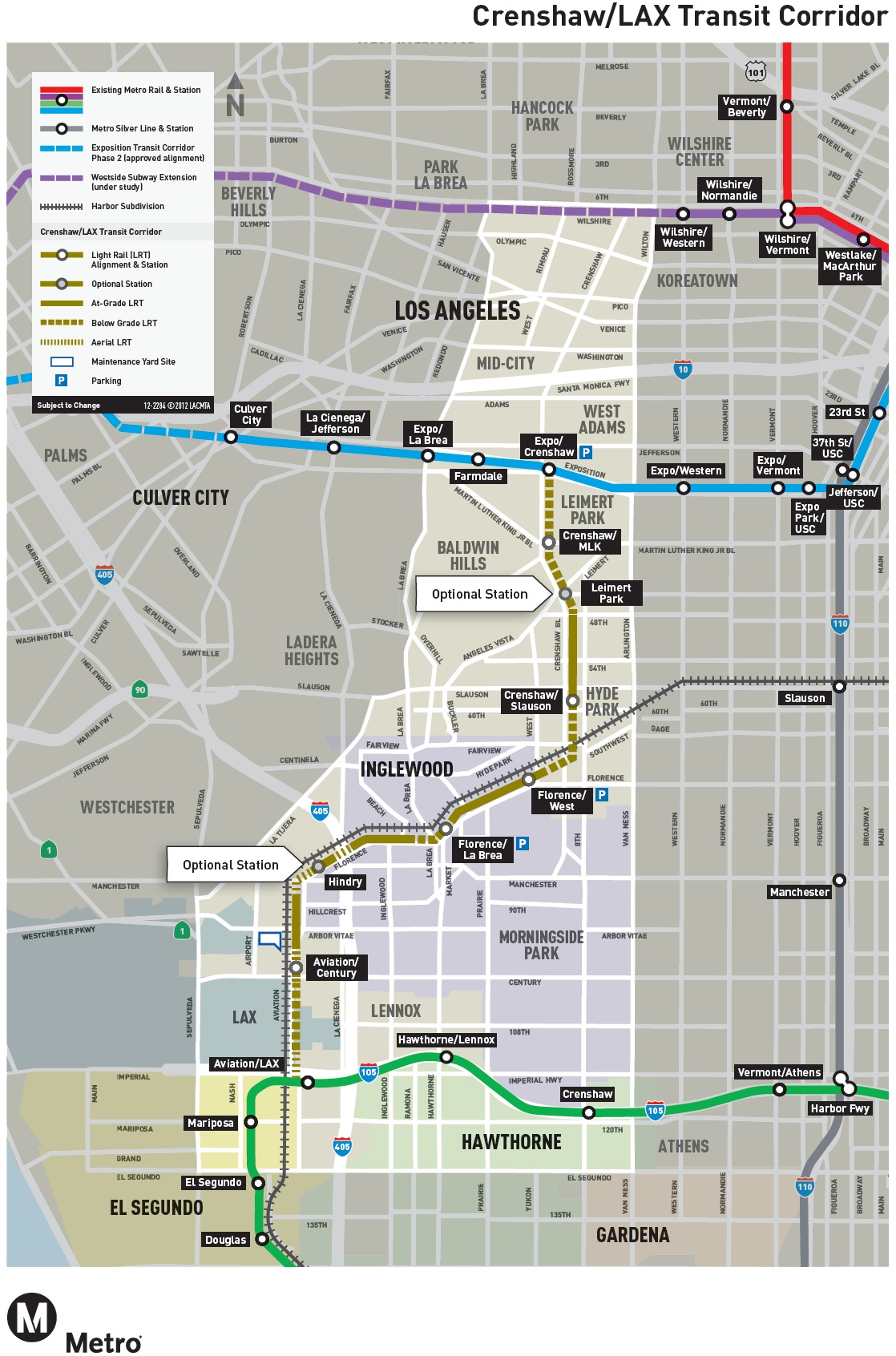 The new rail stations will be Expo/Crenshaw, Crenshaw/Martin Luther King, Crenshaw/Vernon (Leimert Park), Crenshaw/Slauson, Florence/West, Florence/La Brea, Florence/Hindry and Aviation/Century.