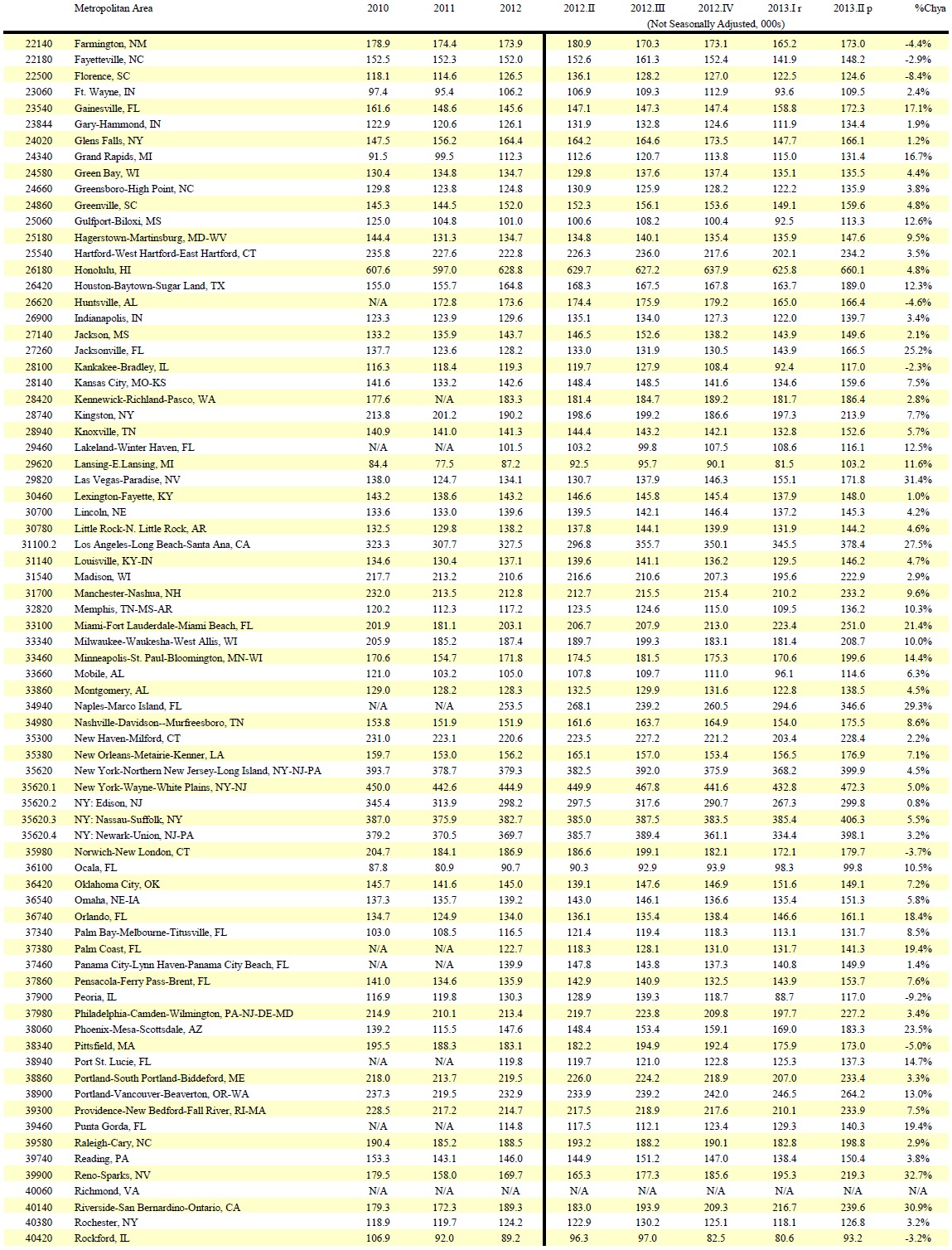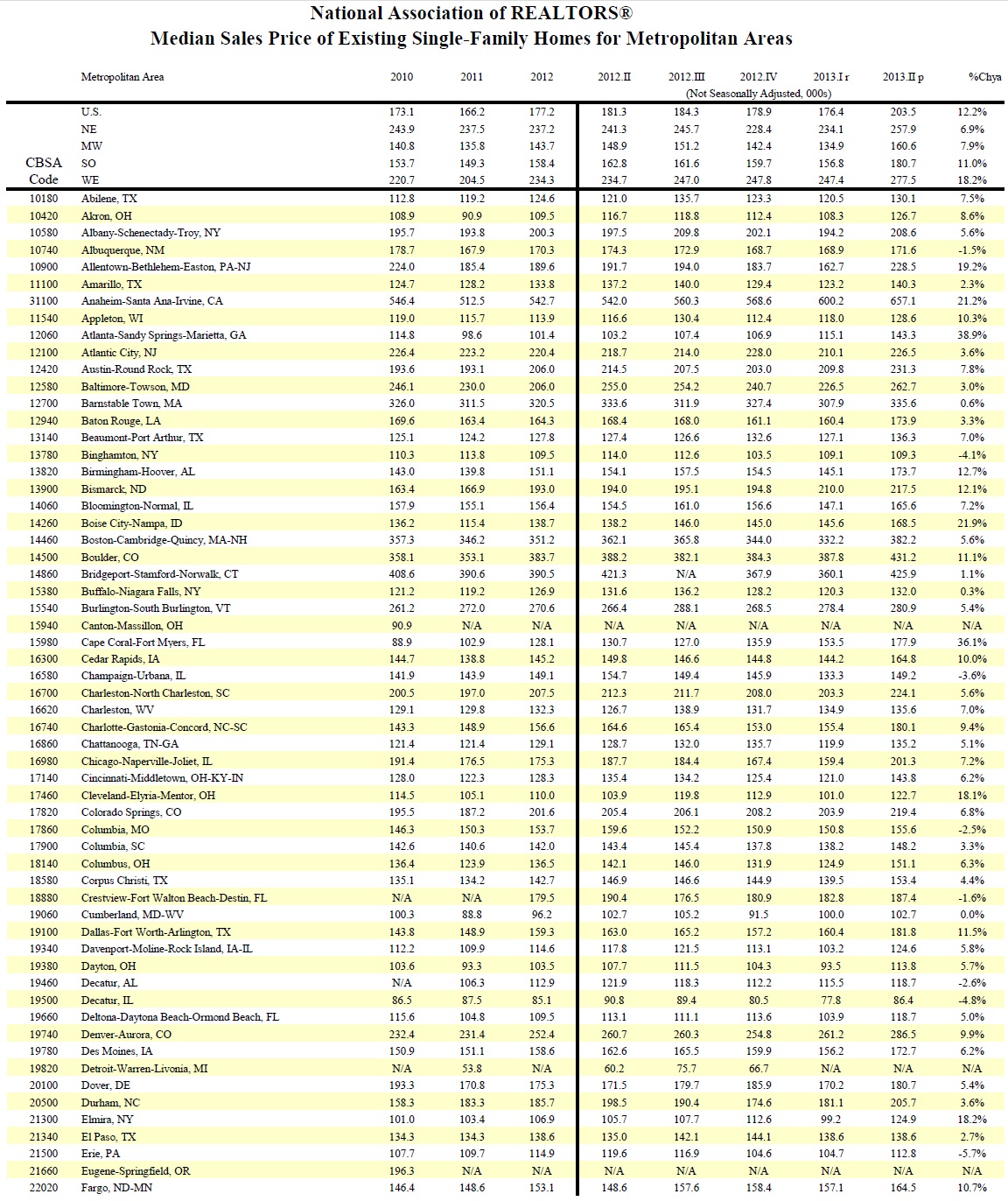 Median Sales Price of Existing Single-Family Homes for Metropolitan Areas