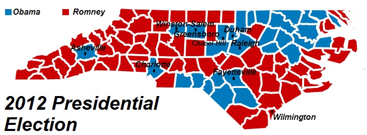 President Obama won North Carolina in 2008 but, lost North Carolina in 2012 by 92,004 votes (Romony 2,270,395 and Obama 2,178,391)