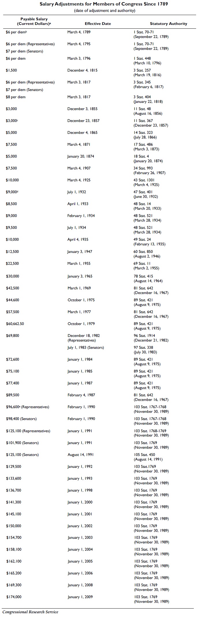 Congress is required by Article I, Section 6, of the Constitution to determine its own pay. Prior to 1969, Congress did so by enacting specific legislation. From 1789 through 1968, Congress raised its pay 22 times using this procedure.