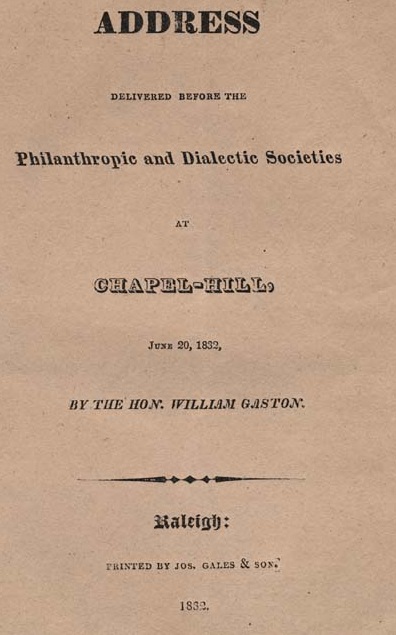 William Gaston was a prominent North Carolina attorney, judge, and University of North Carolina trustee