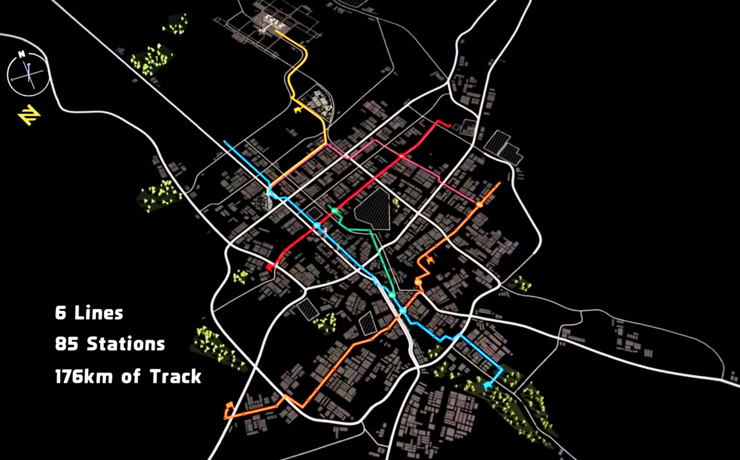 The multi-billion project will involve six rail lines extending 176 kilometers and carrying electric, driverless trains, in what Saudi officials project to be the world’s largest public transport system.