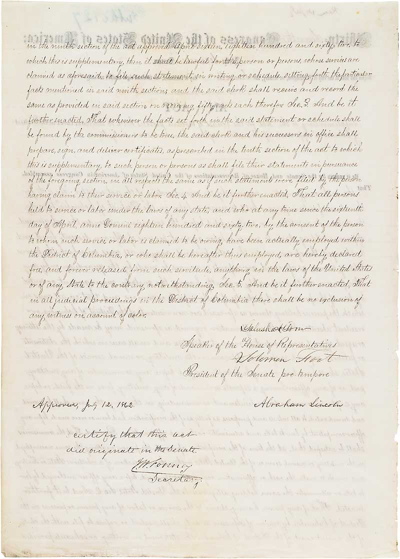 The District of Columbia Emancipation Act -April 16, 1862