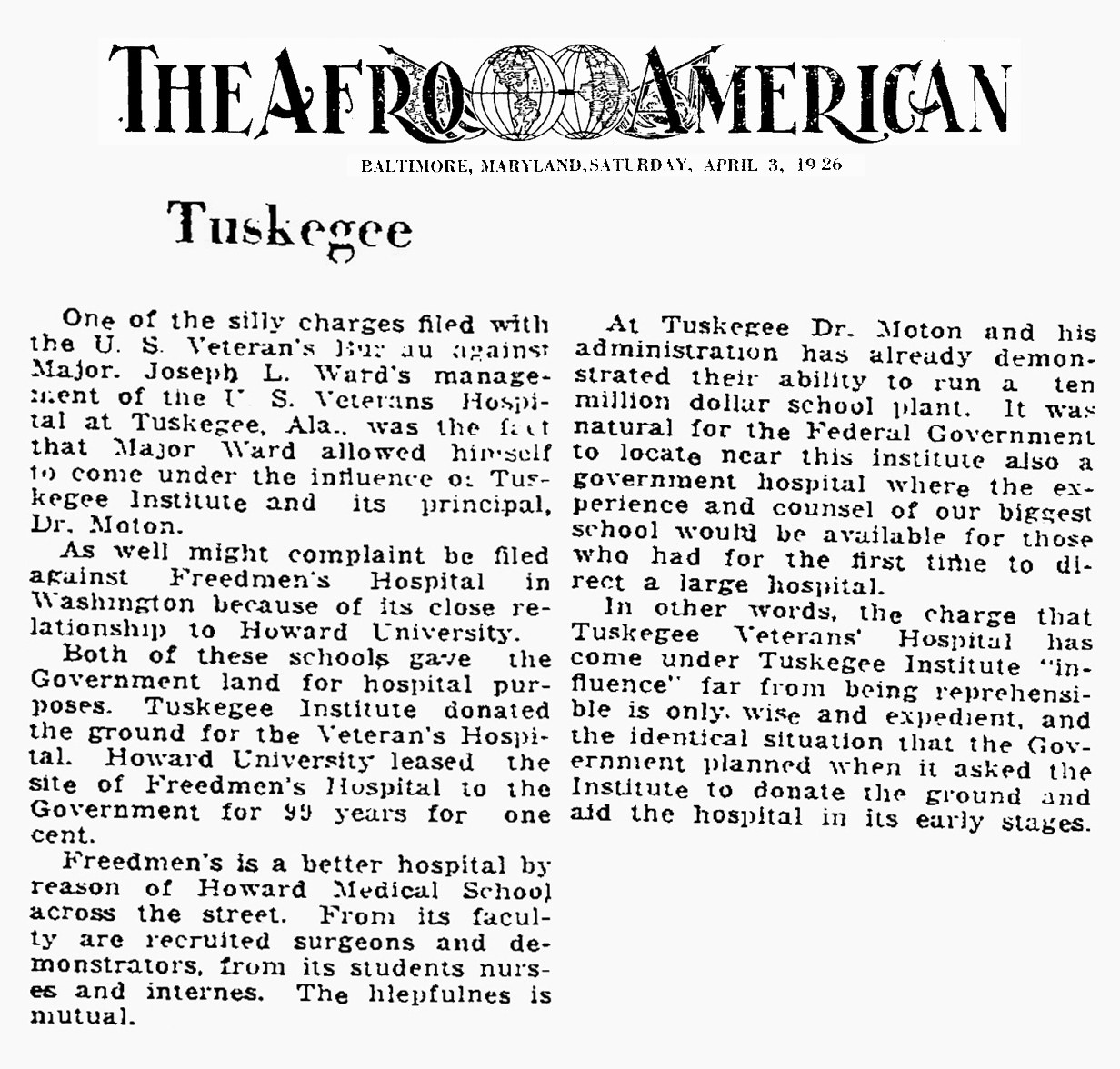 Tuskegee’s Veterans Administration Hospital and Tuskegee’s John A. Andrew Hospital (now closed)