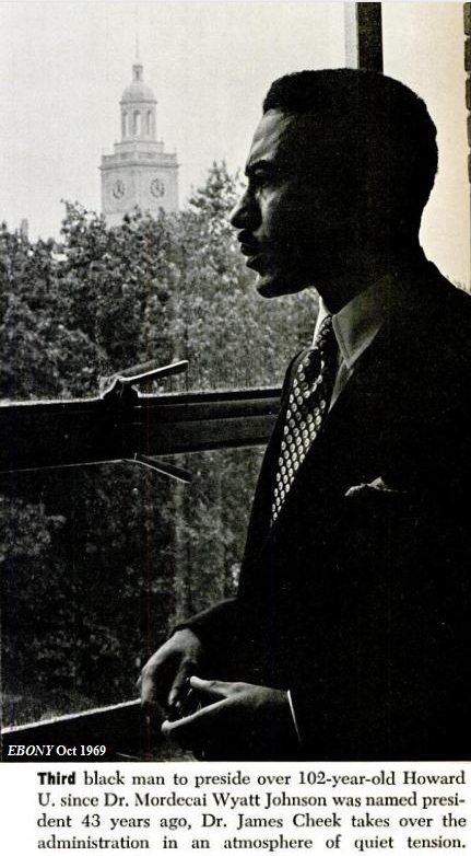Dr. James E. Cheek, at the age of 36 , was appointed president of Howard University. His tenure lasted from 1969 to 1989 where he steered the University through one of its greatest periods of growth and expansion.