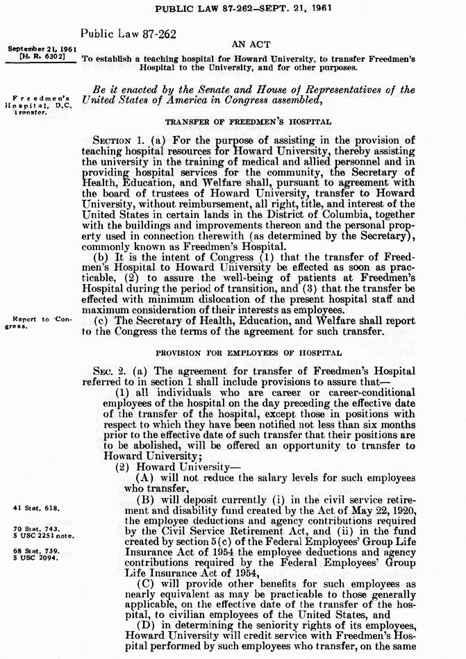 An Act to establish a teaching hospital for Howard University, to transfer Freedmen’s Hospital to the University, and for the other purposes
