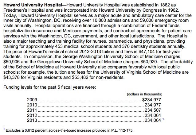 Moody’s Investors Service downgraded Howard University’s credit rating to Baa3, in July 2014, for the second time in less than a year, citing a “precipitous deterioration” in the financial condition of the university’s teaching hospital. A major problem, Moody’s said, is an estimated $37 million operating loss for the university-owned hospital in the fiscal year that ended June 30, a result of declining patient admissions and other financial strains. –Source: Washington Post