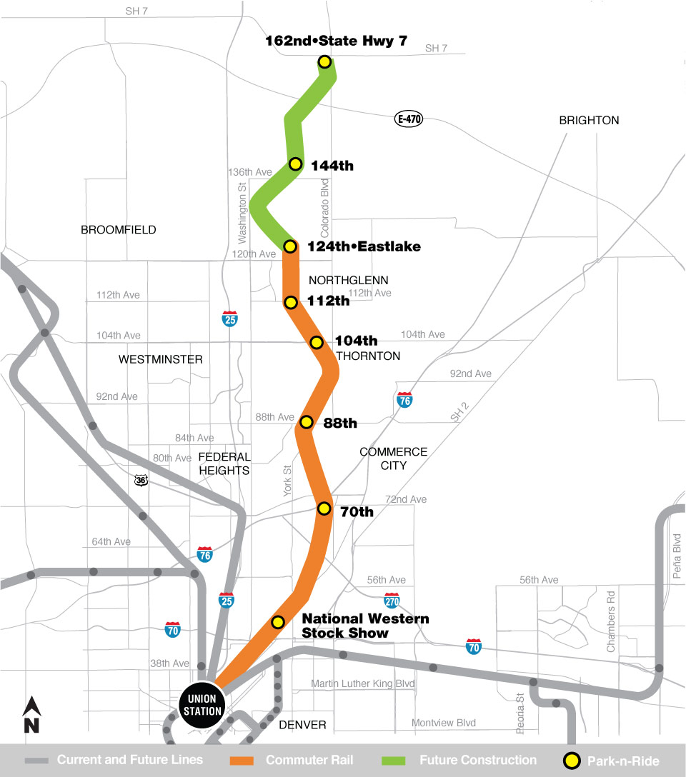 The first 6.2-mile segment of the Northwest Rail Line from Union Station to south Westminster (71st Ave. and Lowell Blvd.) is under construction and funded as part of the Eagle P3 project. This commuter rail project is scheduled for completion in 2016.