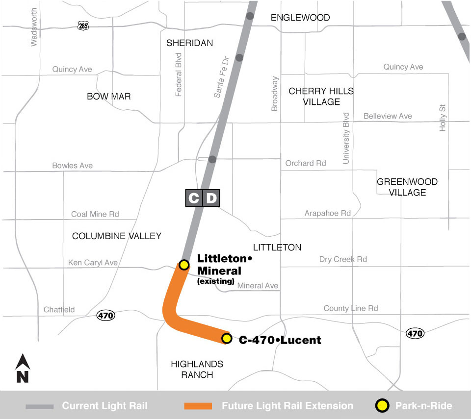 The Southwest Rail Extension will make the Southwest line even more successful by adding 2.5 miles of additional light rail and a 1,000 space Park-n-Ride at the end-of line station at C-470/Lucent Boulevard.