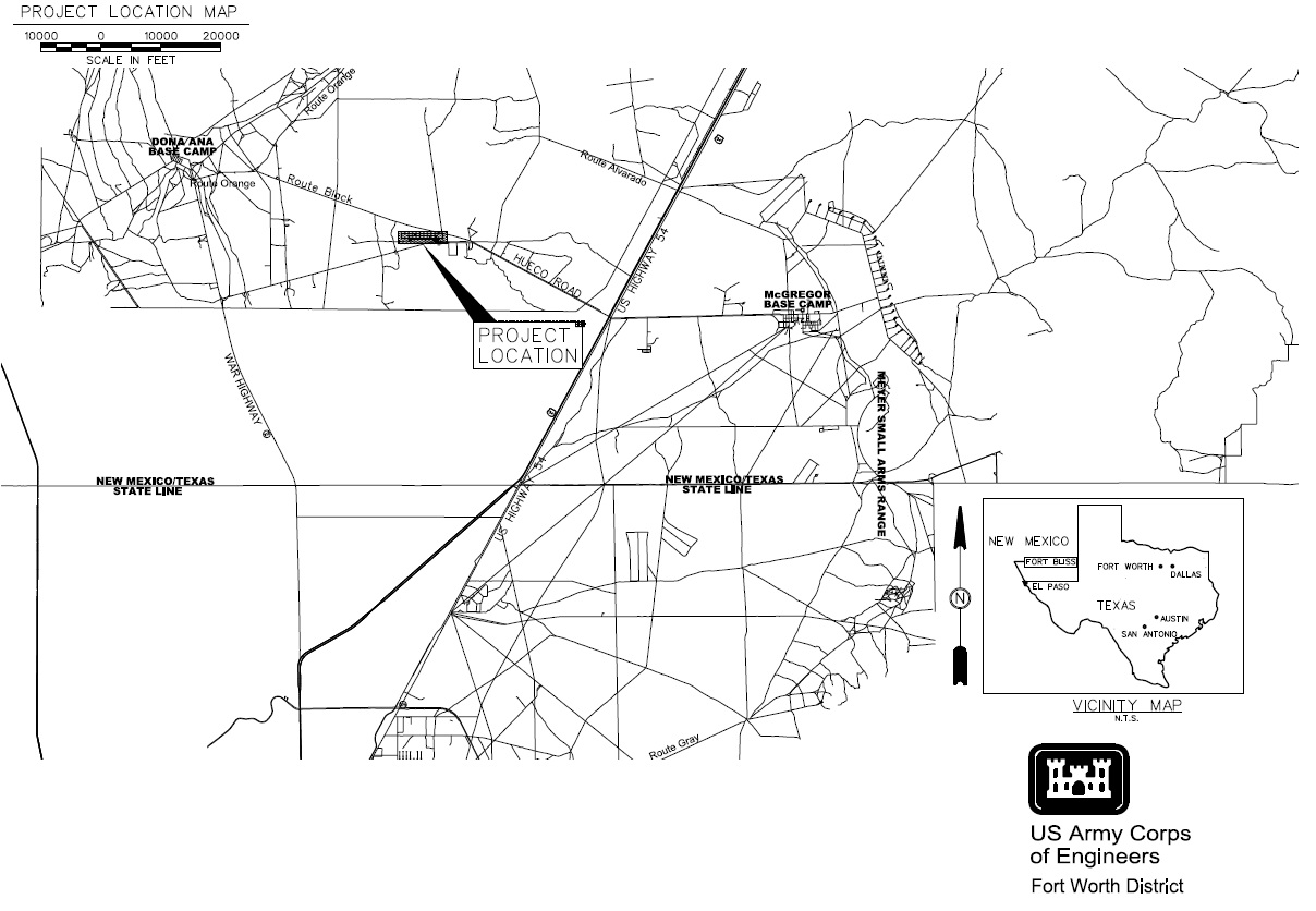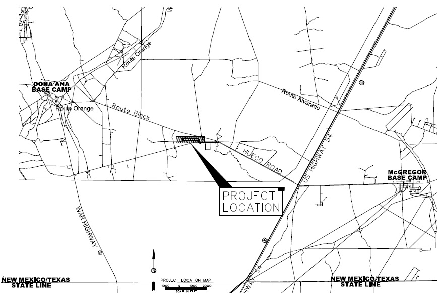 Unmanned Aerial Vehicle Complex (UAV) located on Fort Bliss Army Military Installation in El Paso, Texas. The airport will house the drones Gray Eagle and Shadow and include a 50,000-square-foot unmanned aircraft maintenance hangar and more than a mile of runways, aprons, and taxiways.