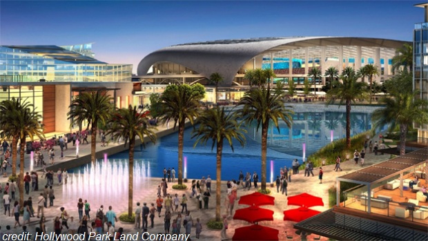 The Hollywood Land Company, a joint venture between Stockbridge Capital Group and The Kroenke Group, plans to build a 80,000-seat stadium, a 6,000-seat performance venue, a 300-room hotel, 2,500 residential units, 1.7 million square feet of retail and office space and 25 acres of public parks, playgrounds and open space on the site.