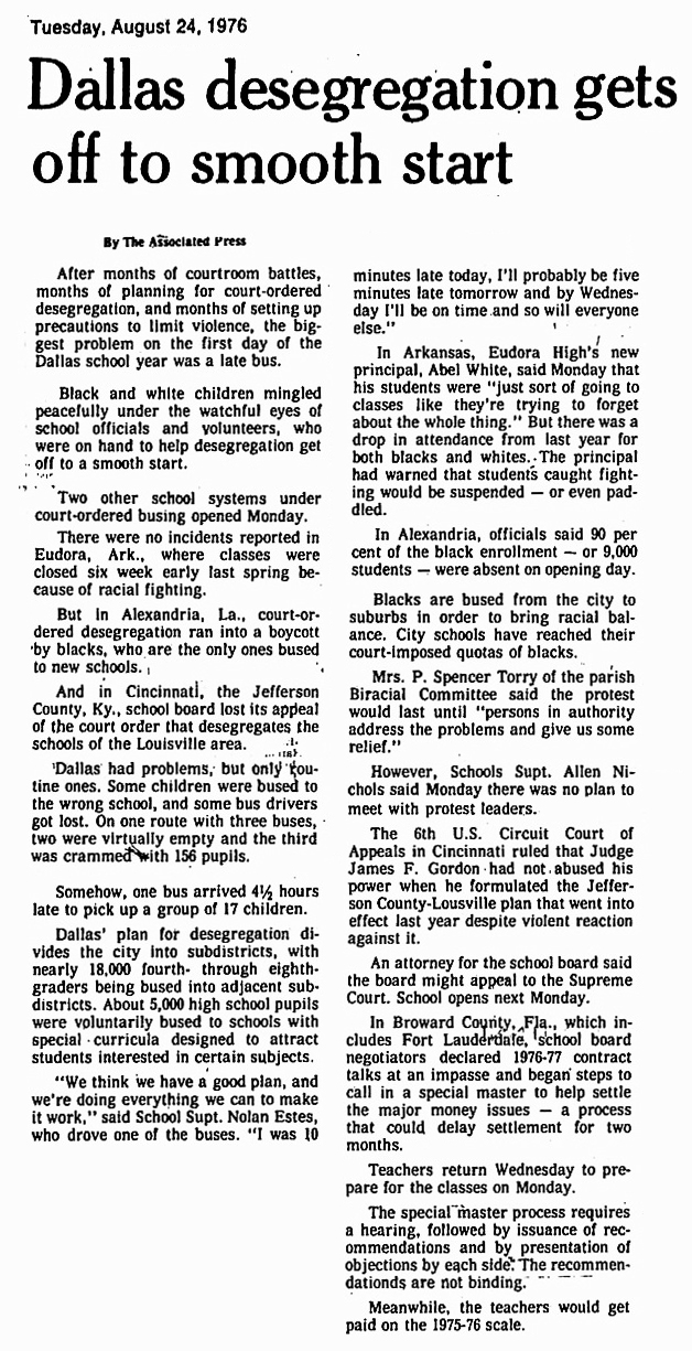 Desegregation in public education: Dallas, Wake County (Raleigh) and Charlotte-Mecklenburg– A look at three public school systems over time