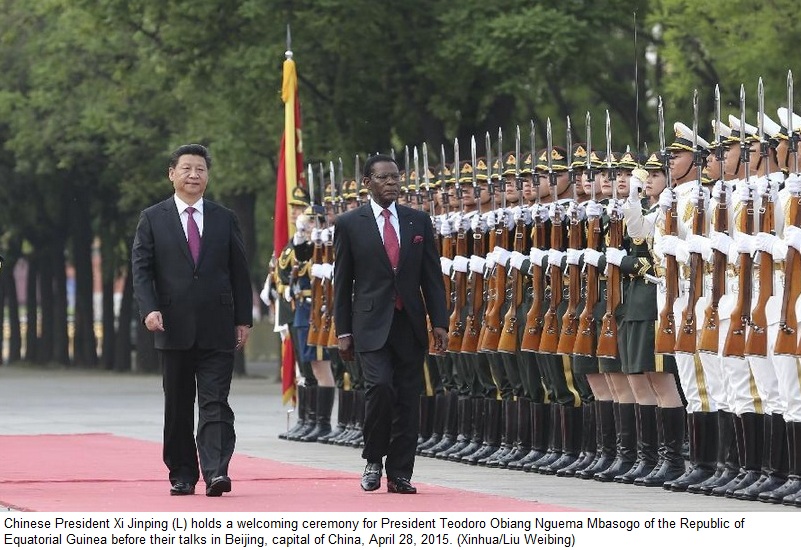 Prior to the talks at the Great Hall of the People, Xi held a red-carpet ceremony to welcome the Equatorial Guinea president, who is making a state visit to China from April 27 to May 1, 2015.
