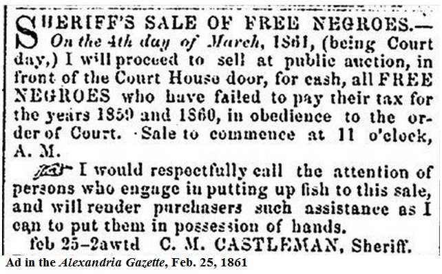 “SHERIFF’S SALE OF FREE NEGROES” -Alexandria, Virginia