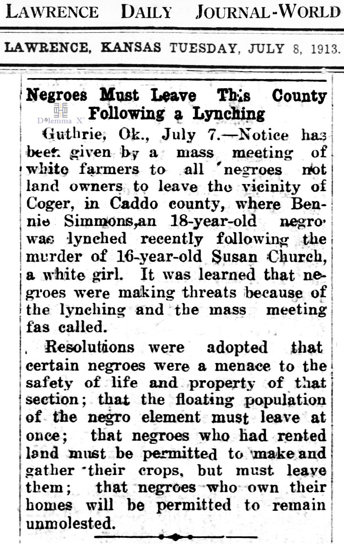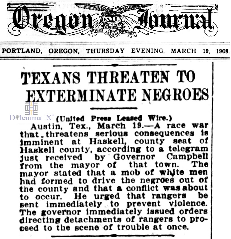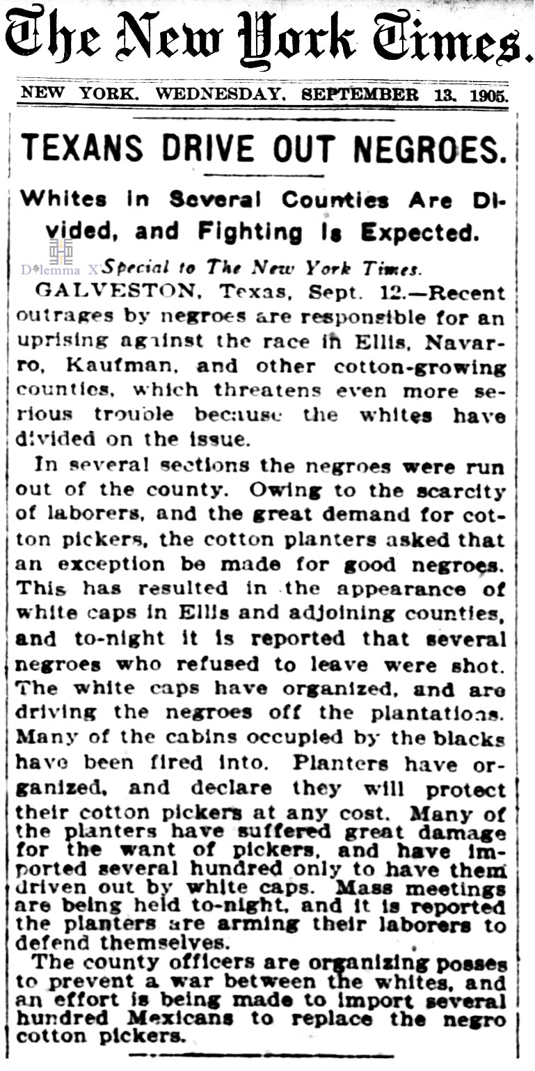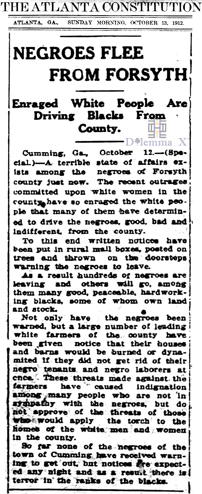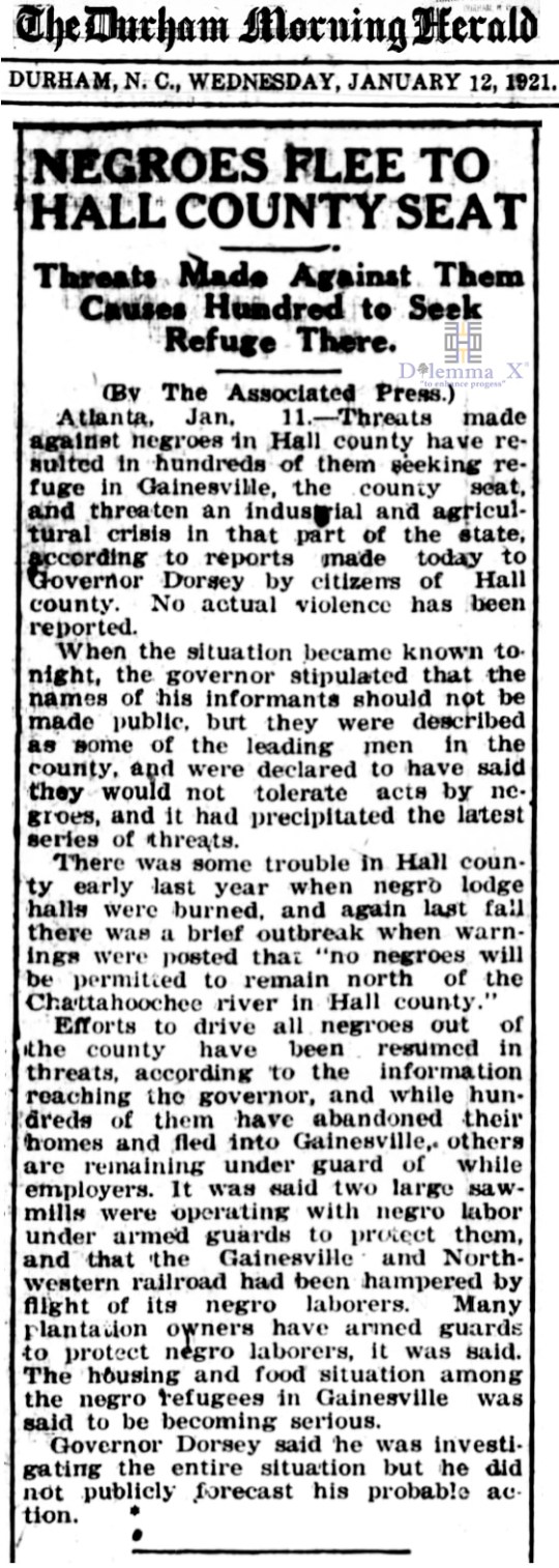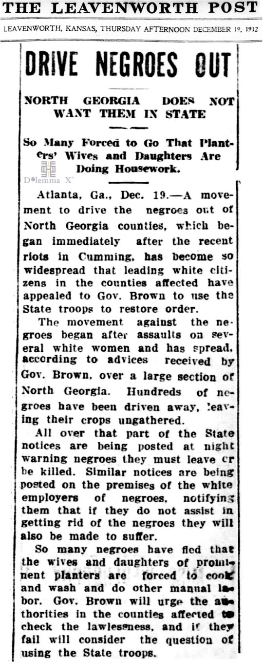 Shared below are only just a few articles on a time when African Americans were threatened by force to flee from the cities and counties in which they had lived.