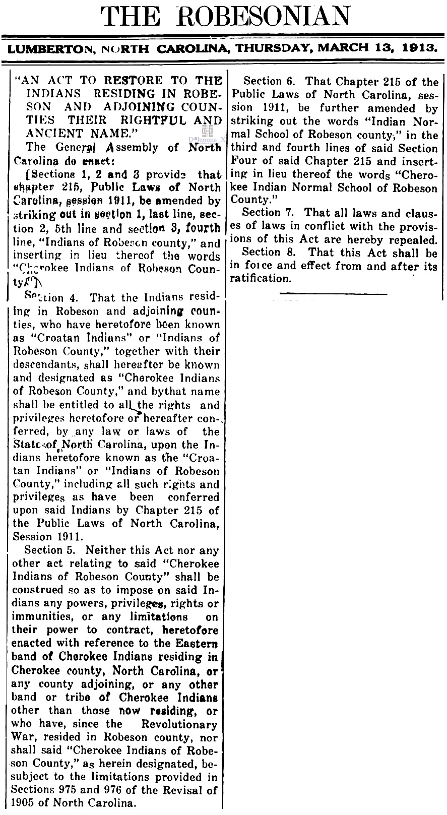 Cherokee Indian Normal School of Robeson County renamed Pembroke State College for Indians now UNC Pembroke