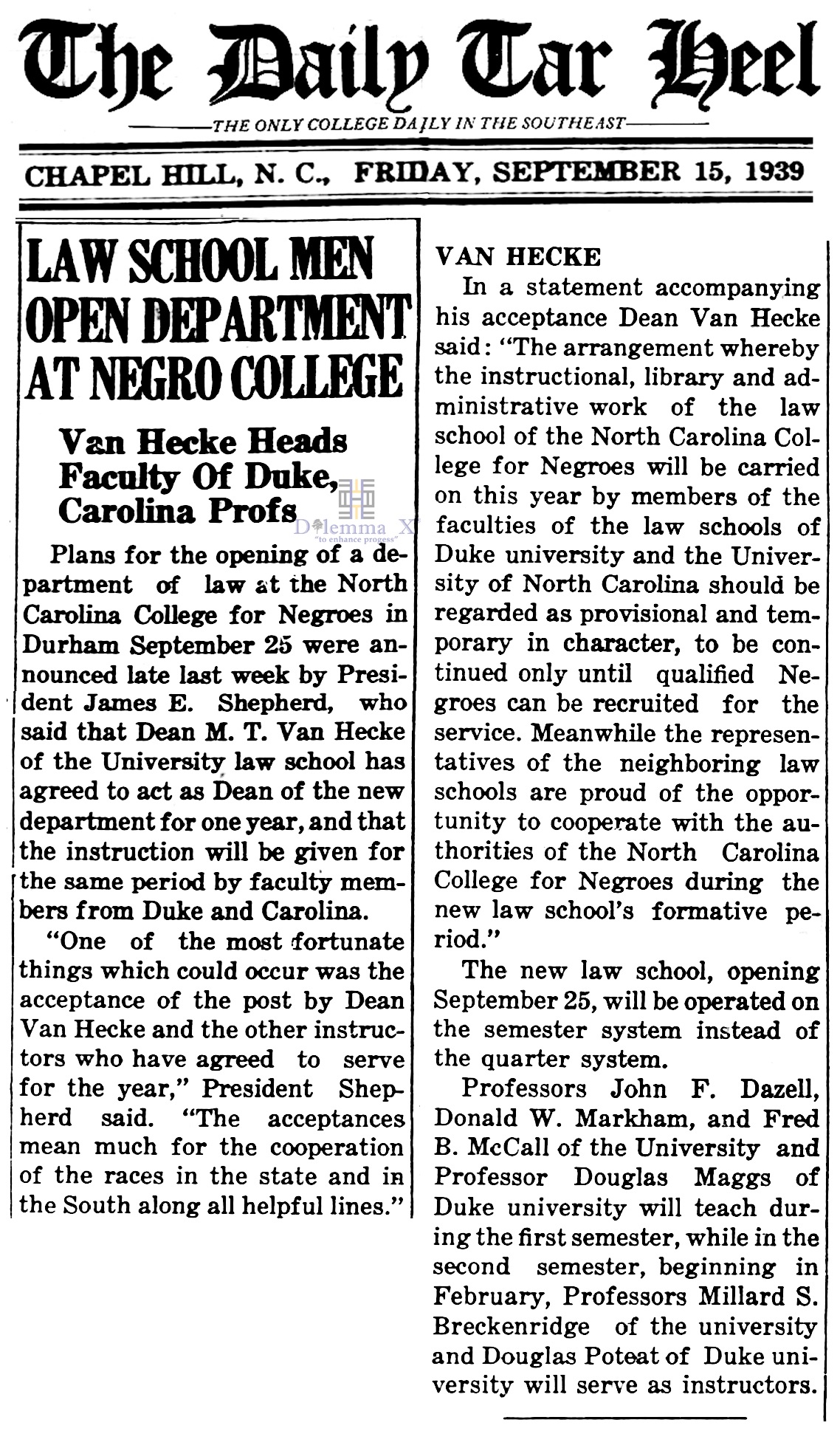 North Carolina College opens its Law School to day this is North Carolina Central University