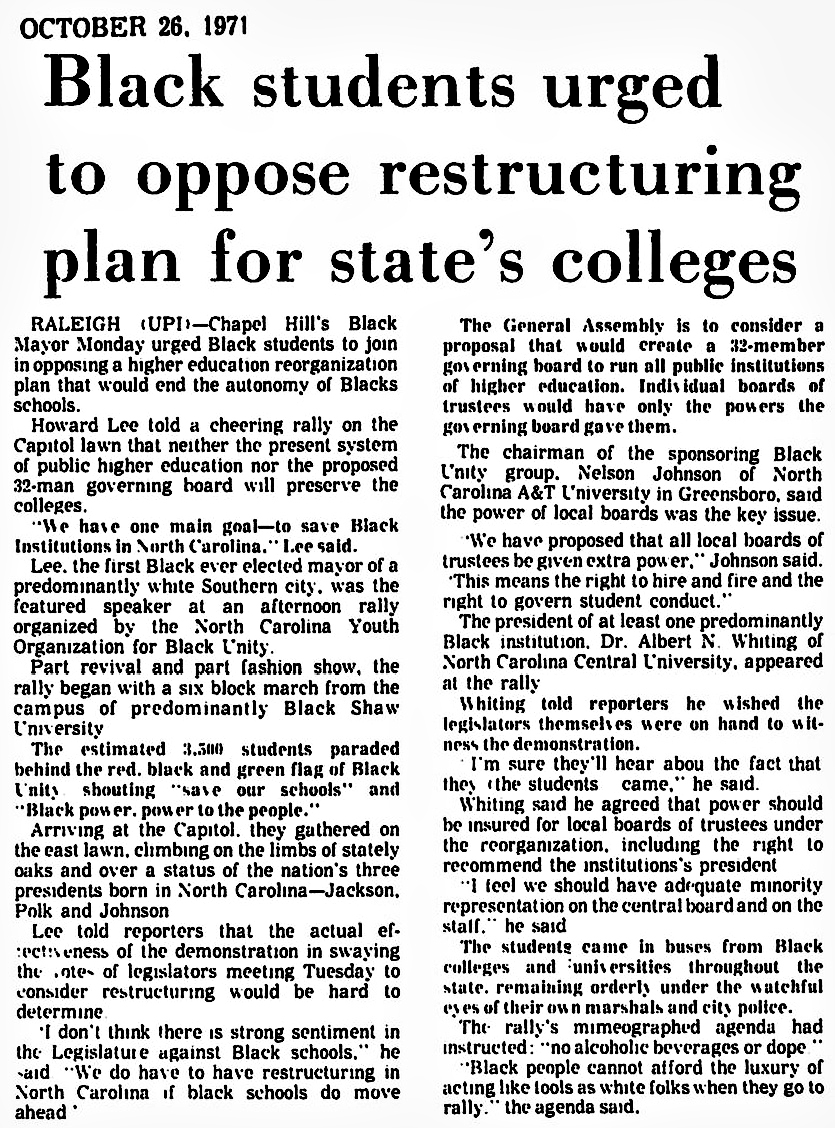 North Carolina had legal racial segregation on all levels. Historically black universities are very important to the history in forming the University of North Carolina system.